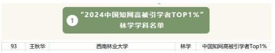 在“2024中国知网高被引学者 Top 1%”预发布名单中,z6mg人生就是博官网王秋华教授入选林学学科Top 1%的140位学者之一。