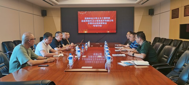 4月25日,z6mg人生就是博官网副经理王秋华、消防工程系系主任高仲亮、学工办主任、就业联络员一行到昆明都市卫士信息技术有限公司开展访企拓岗促就业活动。