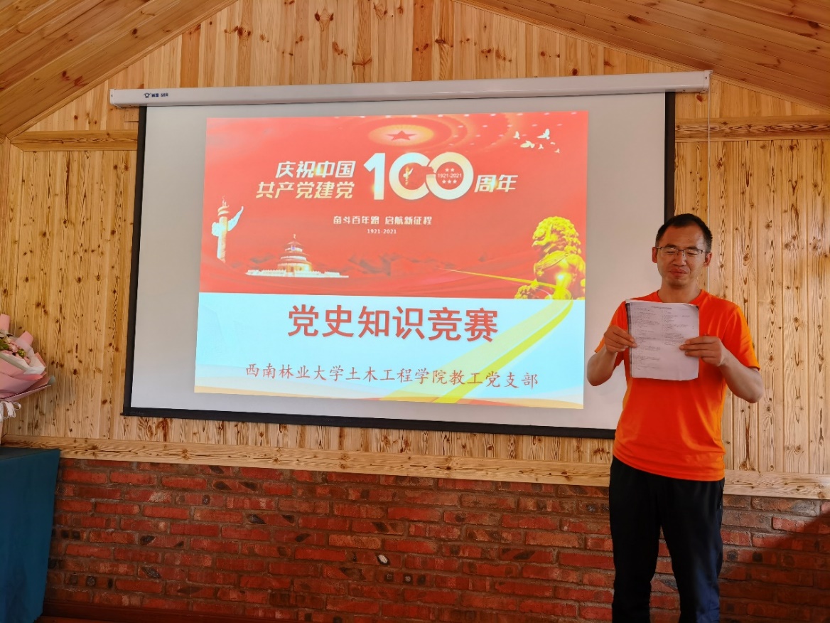 下午,教工党员在会议室举行了党史知识竞答活动。活动由支部宣传委员崔飞主持,竞答活动分为必答题、抢答题和风险题三种类型,四支参赛队伍通过答题累计积分,决出名次。