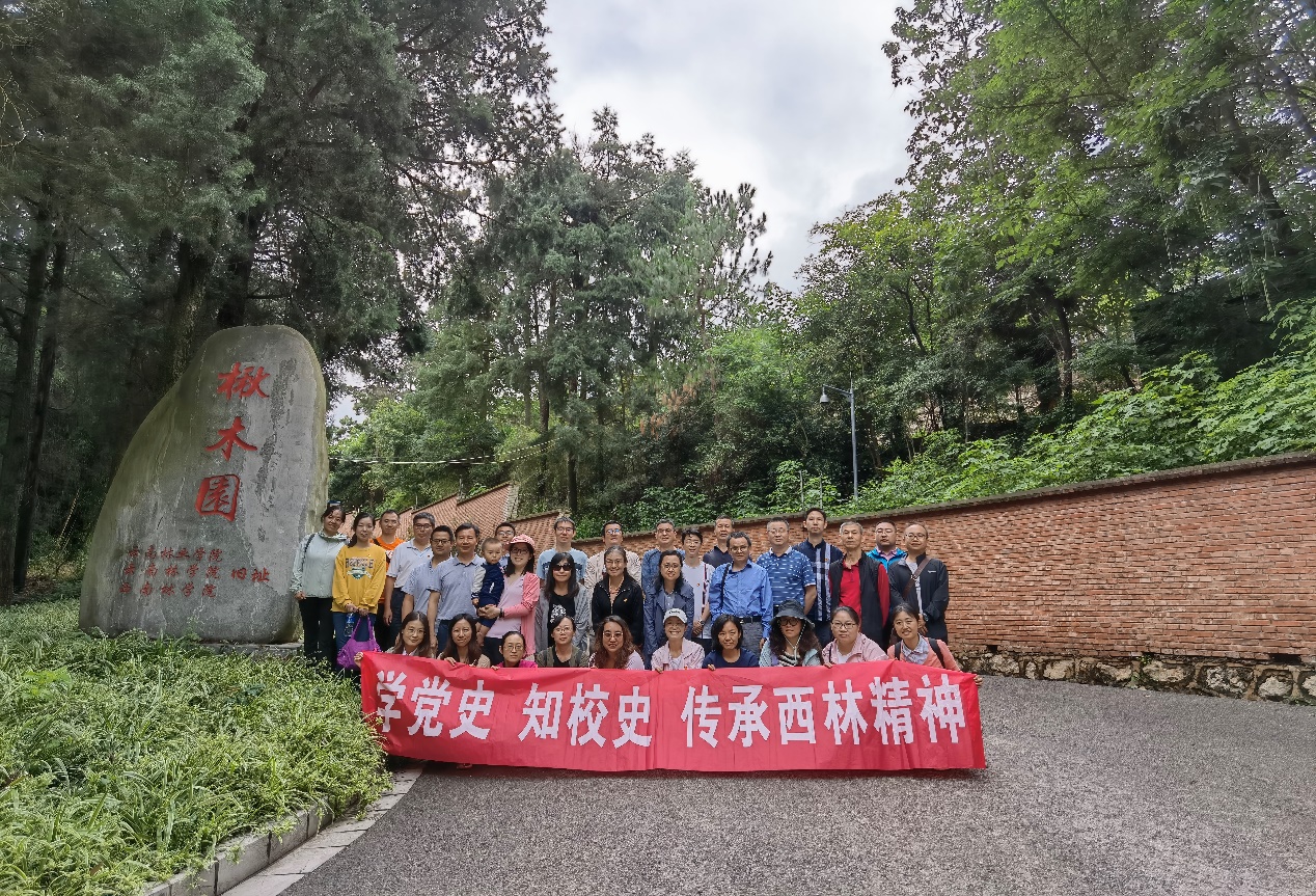 2021年7月2日上午,z6mg人生就是博官网教工支部来到z6mg人生就是博官网前身,云南林公司旧址——安宁楸木园,开展“学党史、知校史”教育活动,教工支部党员和员工支部书记共计31人参加了本次党史教育。