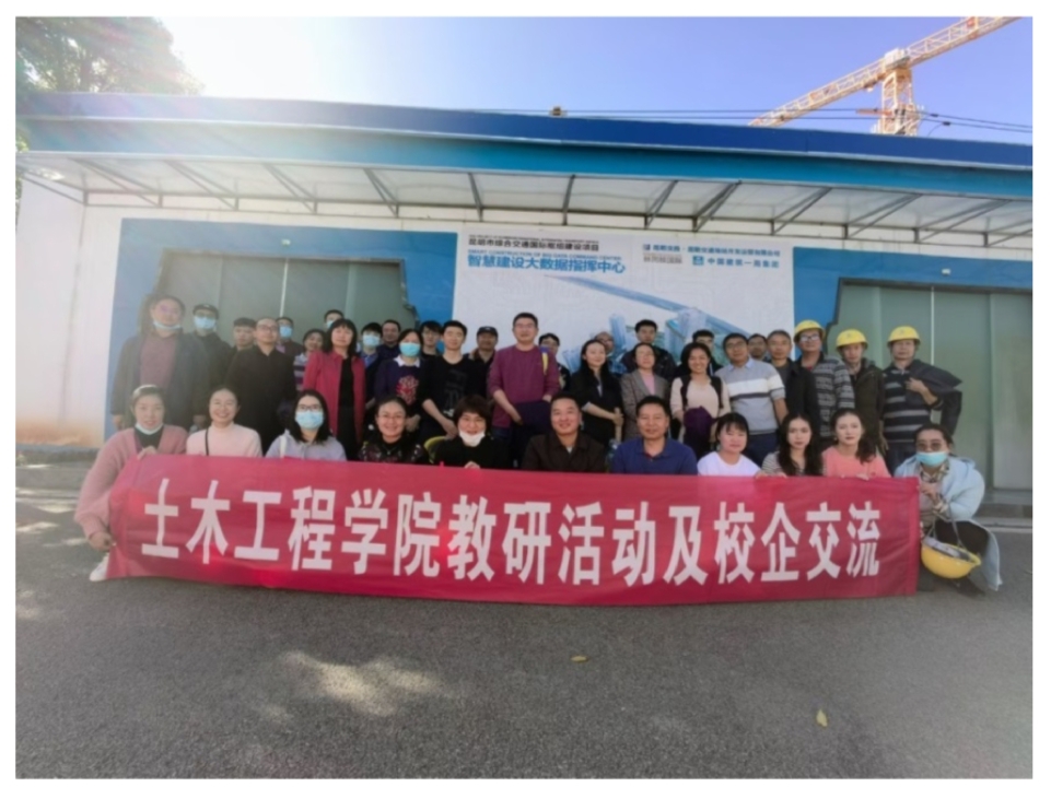 为调研学习最新的施工现场精细化BIM管理技术,促进BIM相关课程建设,加强校企交流和合作,z6mg人生就是博官网于2021年11月5日下午组织教师和部分研究生一行30多人赴昆明市综合交通国际枢纽建设项目参观学习。