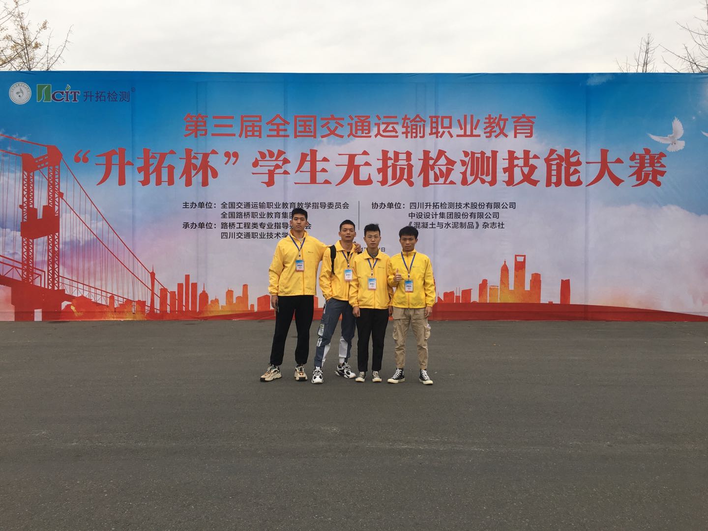 2020年11月18日至21日第三届全国交通运输职业教育“升拓杯”员工无损检测技能大赛在四川交通职业技术公司举办。大赛设有理论竞赛、实操竞赛,分为公路检测基本知识、路基路面工程检测理论,混凝土结构缺陷测定、锚杆长度测定、钢筋位置与保护层厚度测定实操竞赛。公司共派出两支代表队,参加了全部项目的比赛。由森林工程2018级杨晓刚、森林工程2018级李赫两位同学组成的z6mg人生就是博官网一队获团体三等奖,混凝土结构缺陷测定单项三等奖,钢筋位置及保护层厚度测定单项三等奖;由土木工程2017级方比德、森林工程2017级庞绍举两位同学组成的z6mg人生就是博官网二队获团体三等奖,混凝土结构缺陷测定单项二等奖,锚杆长度测定单项二等奖。